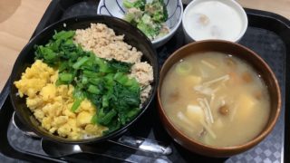 今日はそぼろ、小松菜、卵の三色丼でした‼️